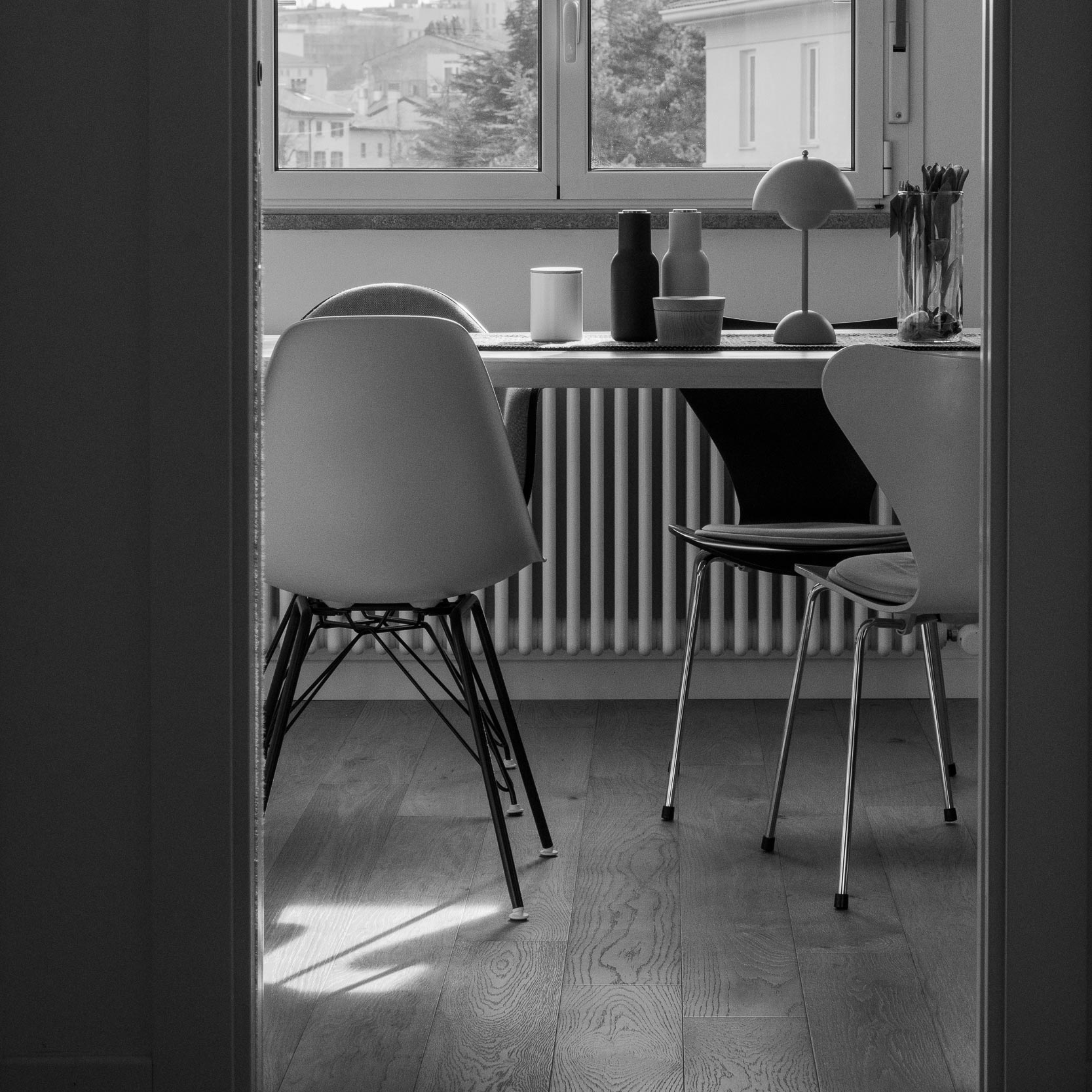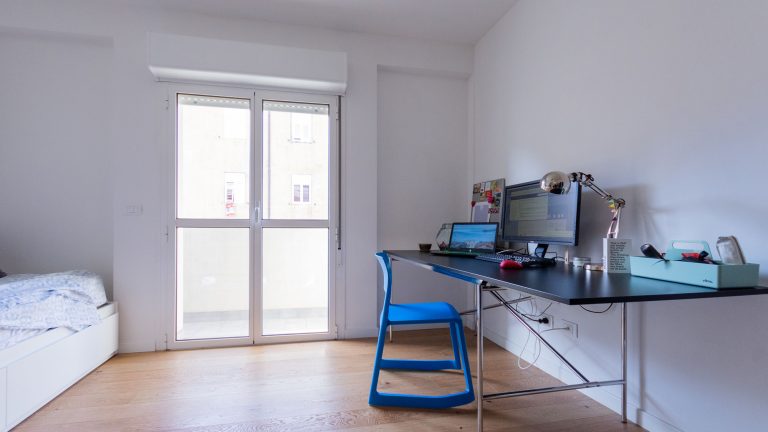 L’impianto elettrico è stato messo a norma, abbiamo modificato l’impianto di riscaldamento e sostituito i termosifoni con dei nuovi elementi del brand Irsap. L’impianto di condizionamento è stato installato ex novo. Ad impreziosire gli ambienti, l’installazione di nuove porte bugnate in legno massello di colore bianco.