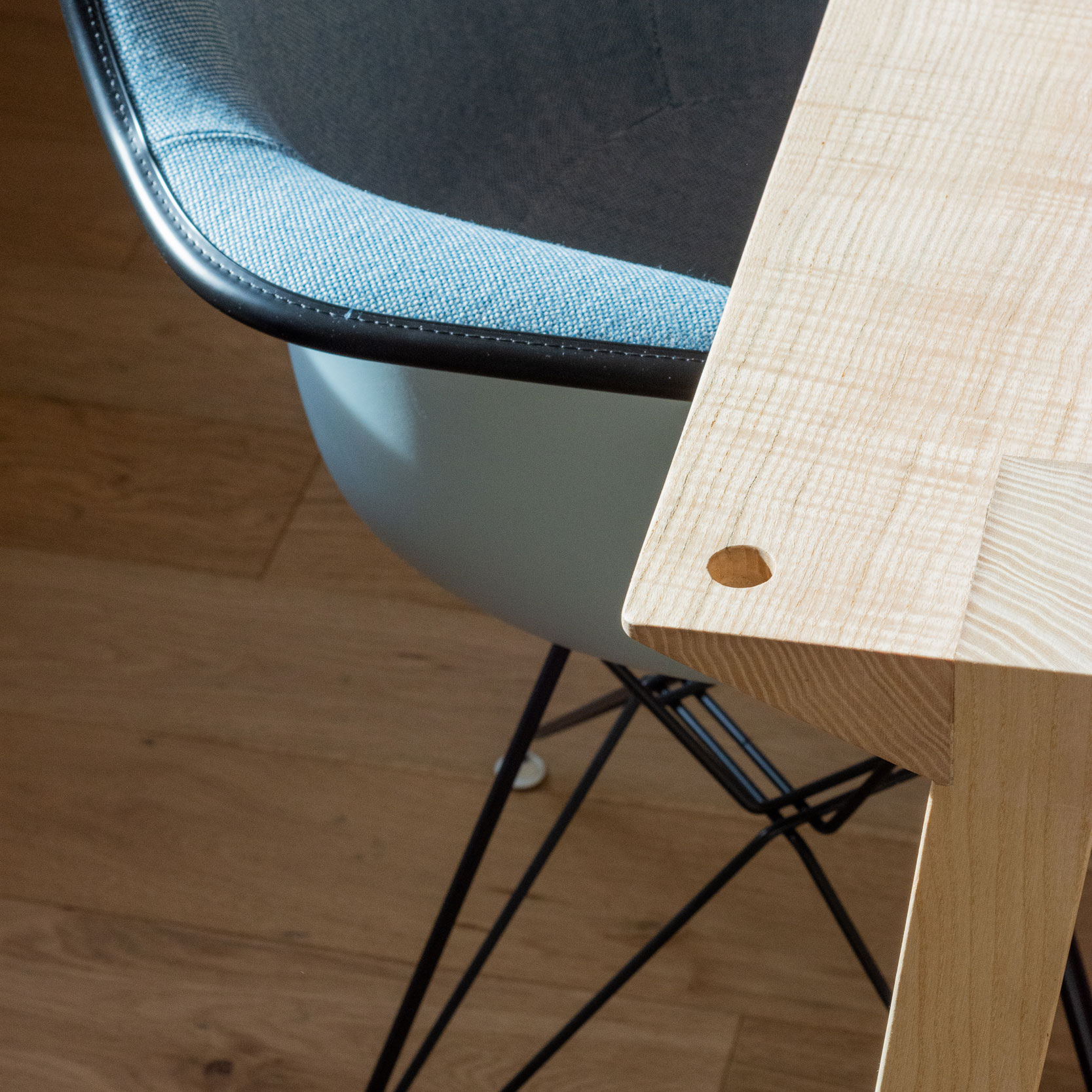 A dare un ulteriore tocco di personalità il tavolo da pranzo in legno realizzato su misura da VUD.